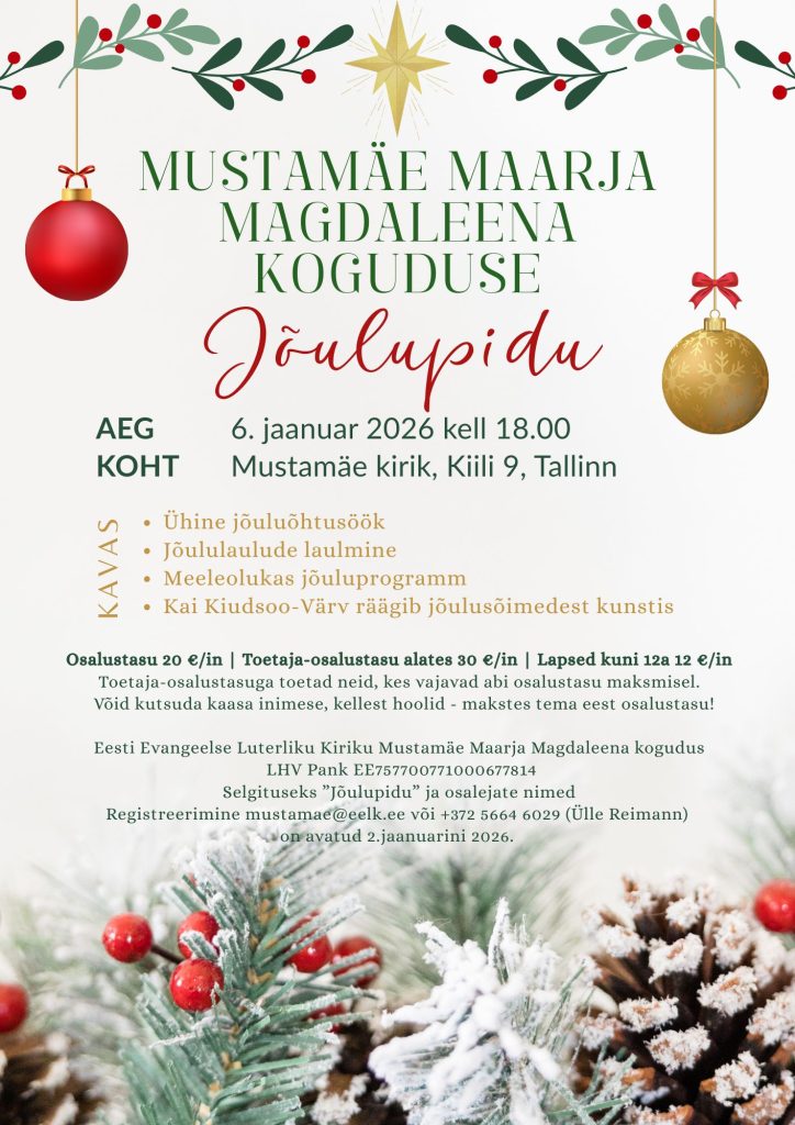 Registreerimine mustamae@eelk.ee või +372 5664 6029 (Ülle Reimann) on avatud 2.jaanuarini 2026.
