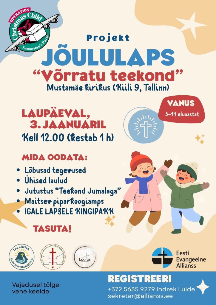 EELK Mustamäe Maarja Magdaleena kogudus, EMK Lootuse kogudus, EEKBL Elav Kivi Vabakogudus ja Evangeelne Allianss kutsuvad vahvale lastepeole: