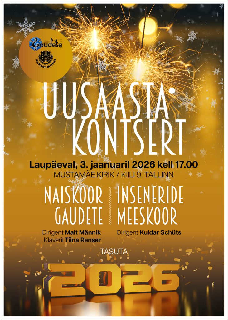 Naiskoor Gaudete ja Inseneride Meeskoori uusaastakontsert laupäeval, 3. jaanuaril kell 17.00