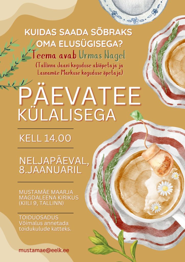 Eakate PÄEVATEE “Kuidas saada sõbraks oma elusügisega?” neljapäeval, 8. jaanuaril kell 14.00, külas Urmas Nagel detsember 28, 2025 sündmus